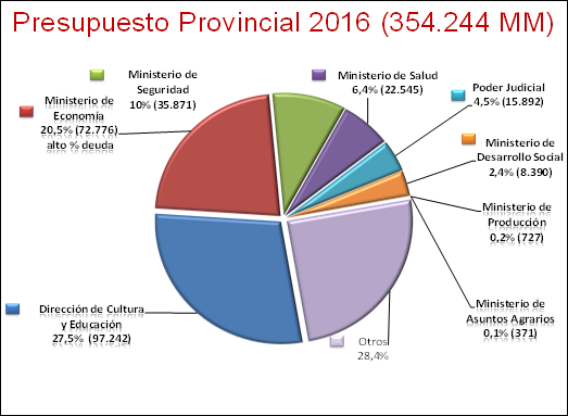 Esta cuestión resulta histórica en la provincia, desde la creación de este Ministerio, se observan porcentajes similares de participación en el presupuesto general, es decir que siempre contó con fondos insuficientes como para cumplir un rol de importancia en la economía real de esta provincia. Por lo tanto se viene viviendo una inercia negativa caracterizada por el hecho de que año tras año ha crecido el endeudamiento público, y en la medida que aumentan las diferentes demandas de la sociedad en materia de seguridad, salud, educación, acción social, infraestructura, los recursos no alcanzan a dar las respuestas debidas, porque lo que recauda el estado es insuficiente dado que depende directamente del producto bruto interno y este no se expande según su potencialidad, debido a la ausencia, como ya señalamos, de un accionar importante del Estado.